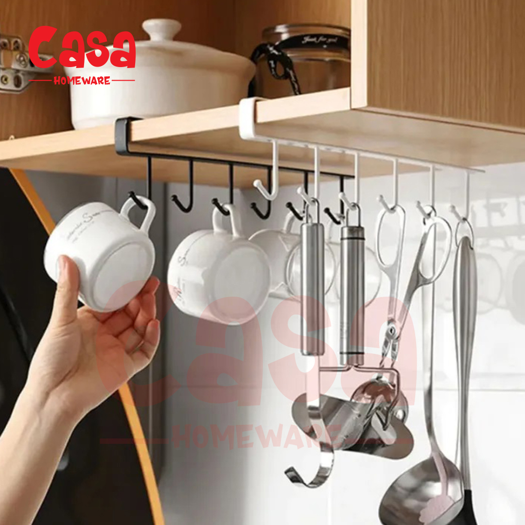 Metal 6 Hooks Hanger For Kitchen Mug Cup Storage Rack Cupboard Hanging Coffee Cup Organizer Closet Clothes Shelf Hanger Knife Spoons